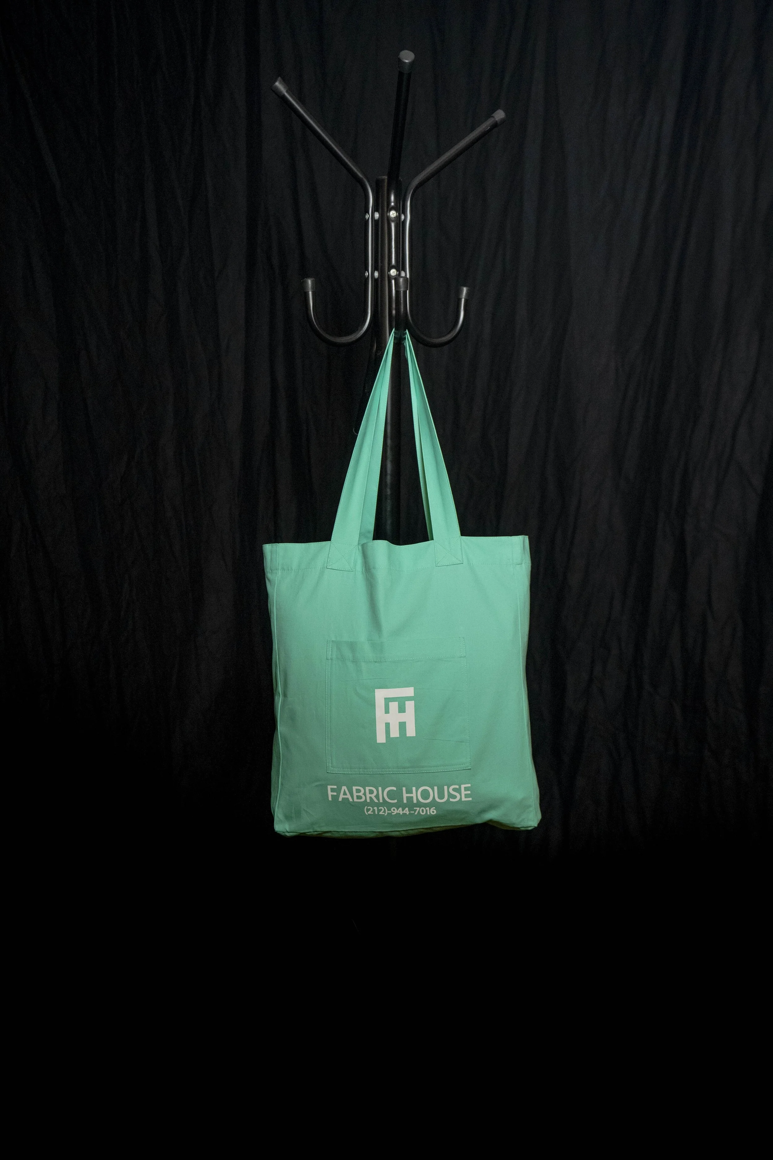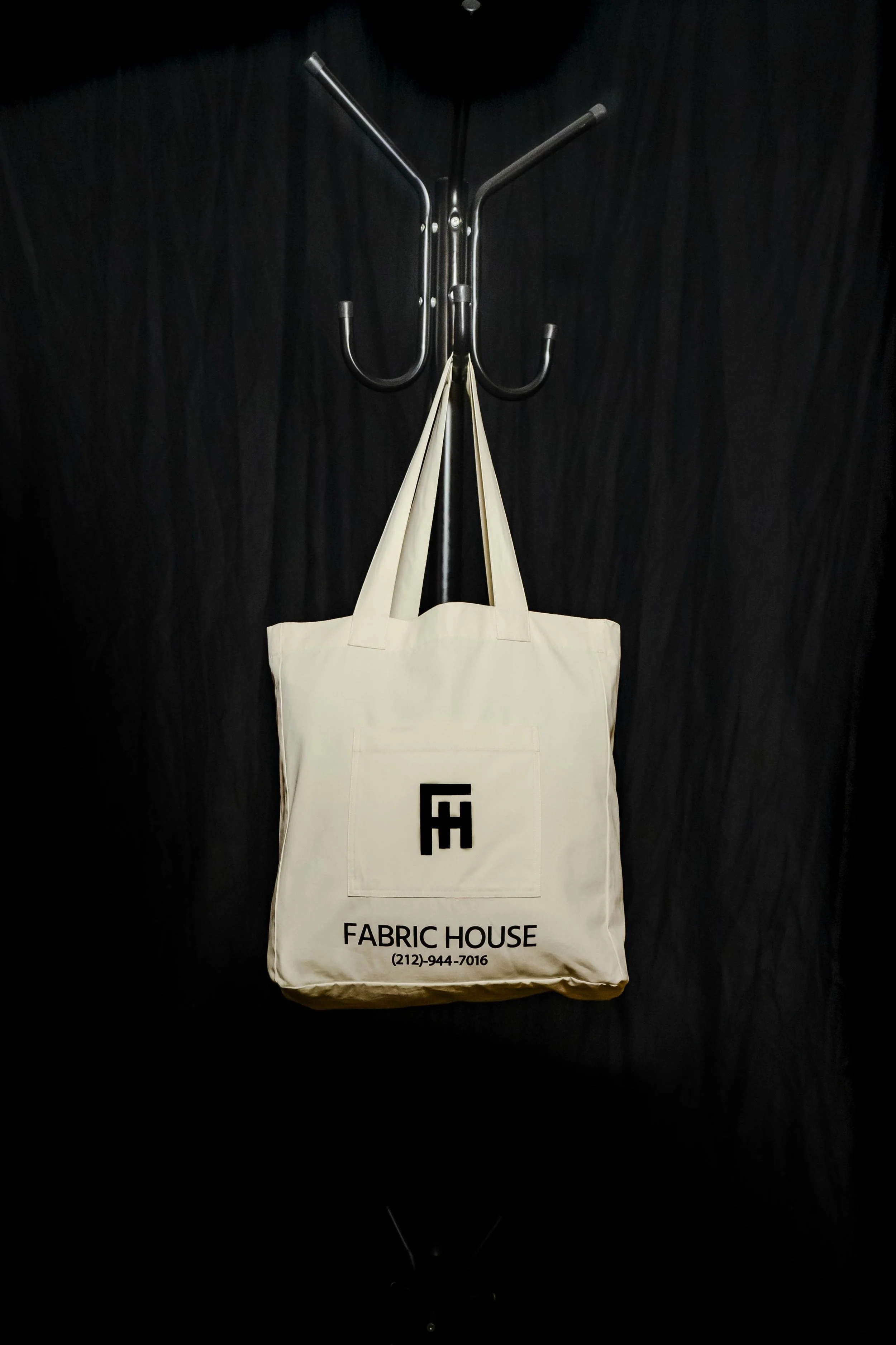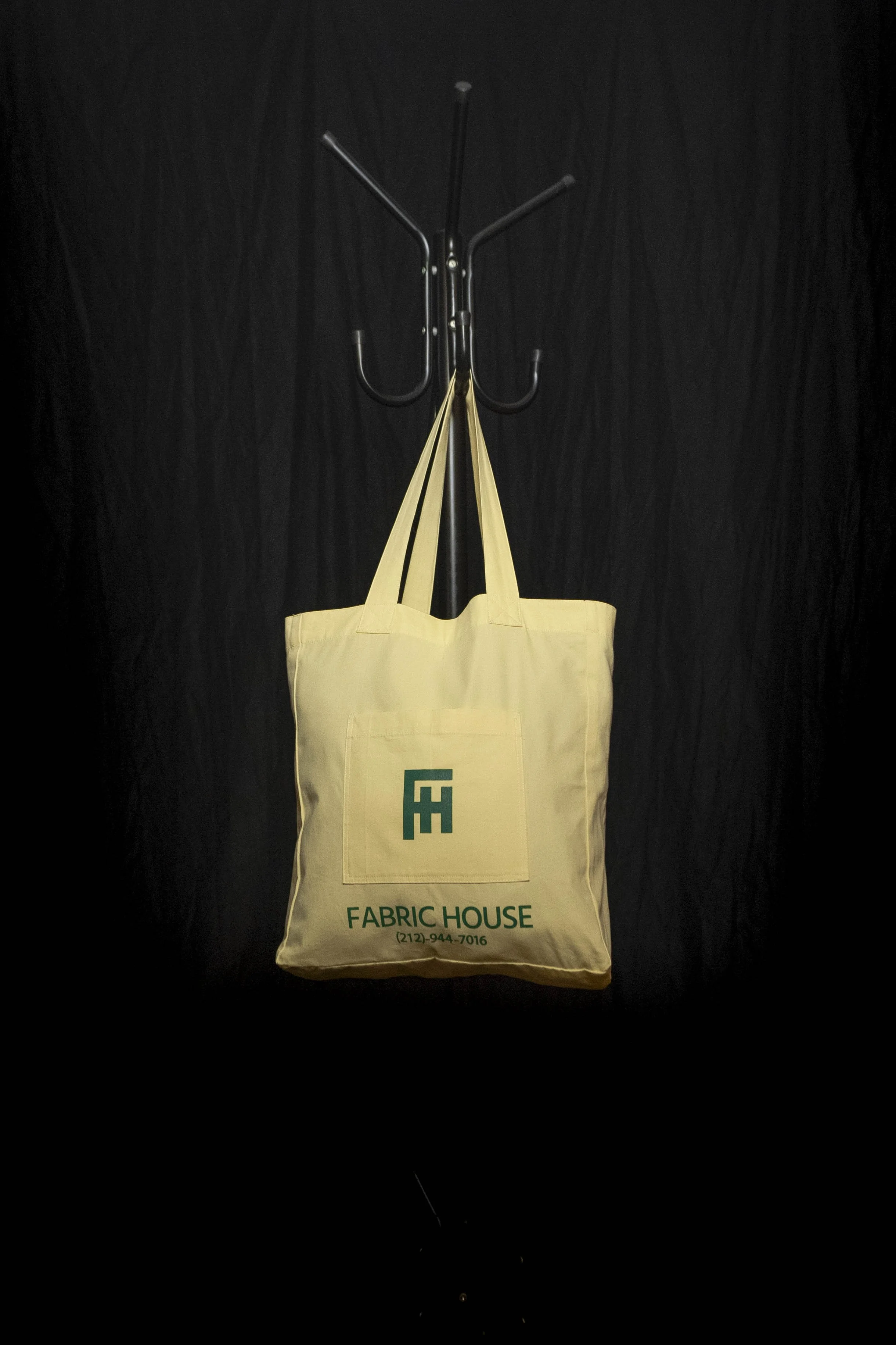 A promotional tote bag developed for Fabric House NYC as part of an initiative to reduce plastic bag usage and offer a reusable option for returning clients.